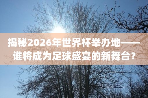 摘要:本文将为您揭秘2026年世界杯足球赛的举办地。经过激烈的申办竞争,最终目的地逐渐浮出水面。届时,足球盛宴将在新舞台上展开,吸引全球的目光和关注。本文将介绍申办过程中的亮点和悬念,以及举办地可能面临的挑战和准备工作。期待这场足球盛宴的到来,为世界带来激情与欢乐。