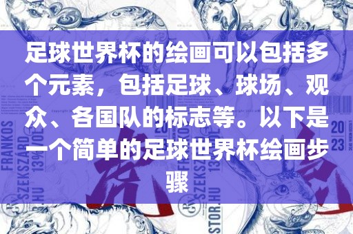 这只是一个简单的足球世界杯绘画步骤,你可以根据自己的创意和喜好进行更多的发挥和创作。