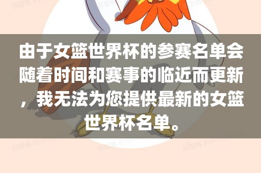 由于女篮世界杯的参赛名单会随着时间和赛事的临近而更新,我无法为您提供最新的女篮世界杯名单。