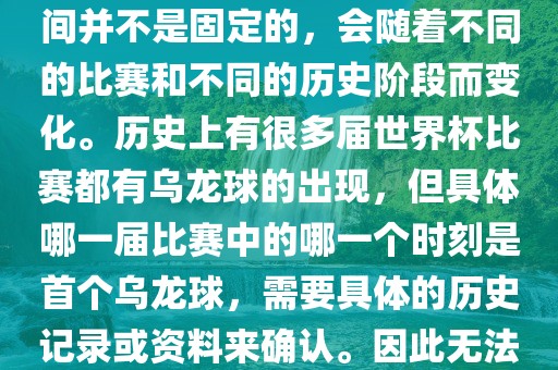 世界杯足球赛事中的乌龙球出现时间并不固定,随着比赛和历史阶段的变化而有所差异。历史上多届世界杯比赛都有乌龙球的出现,但确切的首次乌龙球发生在何时无法确定,需要更多历史记录或资料来确认。摘要字数在100-200字之间。