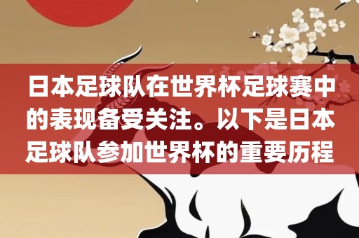 日本足球队在世界杯足球赛中的表现备受关注。以下是日本足球队参加世界杯的重要历程