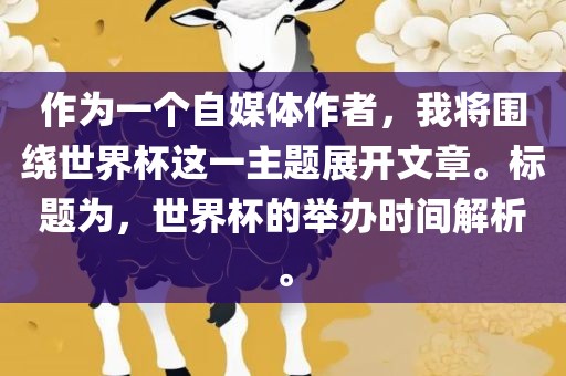 作为一个自媒体作者,我将围绕世界杯这一主题展开文章。标题为,世界杯的举办时间解析。