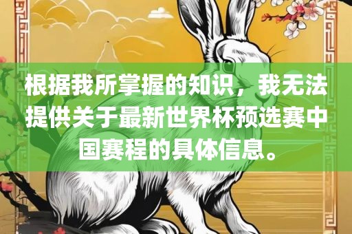 根据我所掌握的知识,我无法提供关于最新世界杯预选赛中国赛程的具体信息。