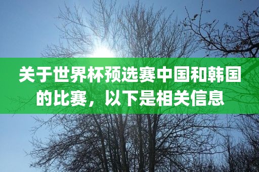 关于世界杯预选赛中国和韩国的比赛,以下是相关信息