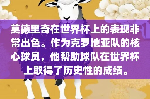 莫德里奇在世界杯上的表现非常出色。作为克罗地亚队的核心球员,他帮助球队在世界杯上取得了历史性的成绩。