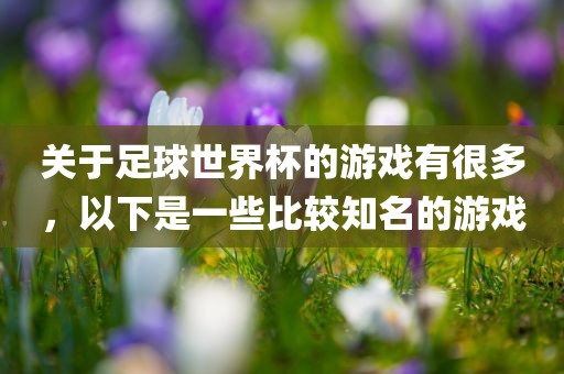 关于足球世界杯的游戏有很多,以下是一些比较知名的游戏