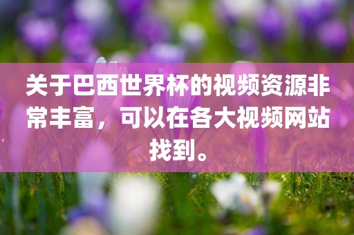关于巴西世界杯的视频资源非常丰富,可以在各大视频网站找到。