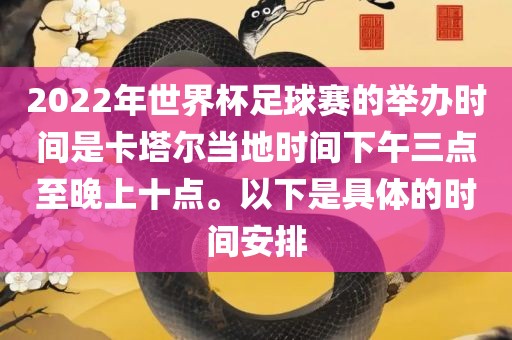 2022年世界杯足球赛的举办时间是卡塔尔当地时间下午三点至晚上十点。以下是具体的时间安排