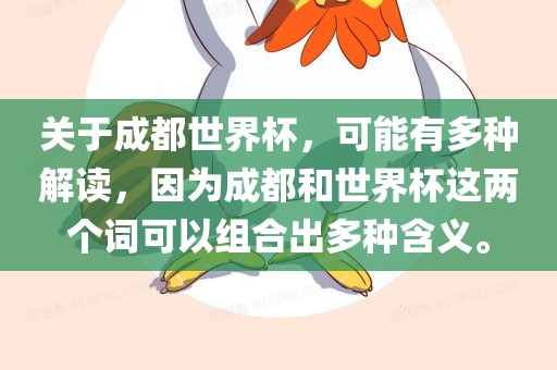 关于成都世界杯,可能有多种解读,因为成都和世界杯这两个词可以组合出多种含义。