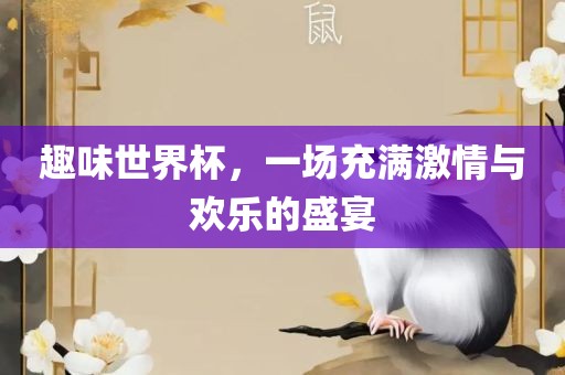 在这个充满欢乐的盛宴中,让我们一起为足球运动喝彩,为那些英勇拼搏的球员们鼓掌,为那些激情四溢的比赛瞬间感动,让我们一起走进趣味世界杯的世界,共同体验这场全球盛事的独特魅力!