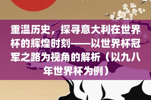 重温历史,探寻意大利在世界杯的辉煌时刻——以世界杯冠军之路为视角的解析(以九八年世界杯为例)