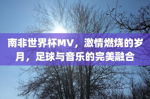 随着世界杯的热潮再次席卷全球,我们不禁回想起那一届充满惊喜与感动的南非世界杯,让我们一起回顾那段激情燃烧的岁月,感受南非世界杯MV中足球与音乐的完美融合。
