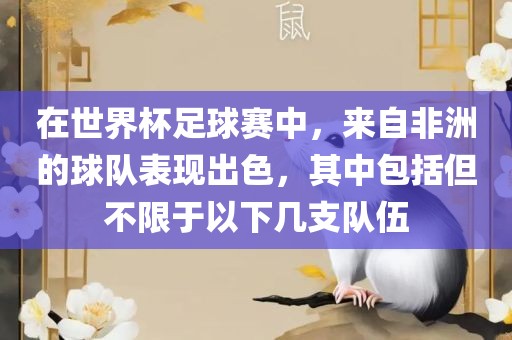 在世界杯足球赛中,来自非洲的球队表现出色,其中包括但不限于以下几支队伍